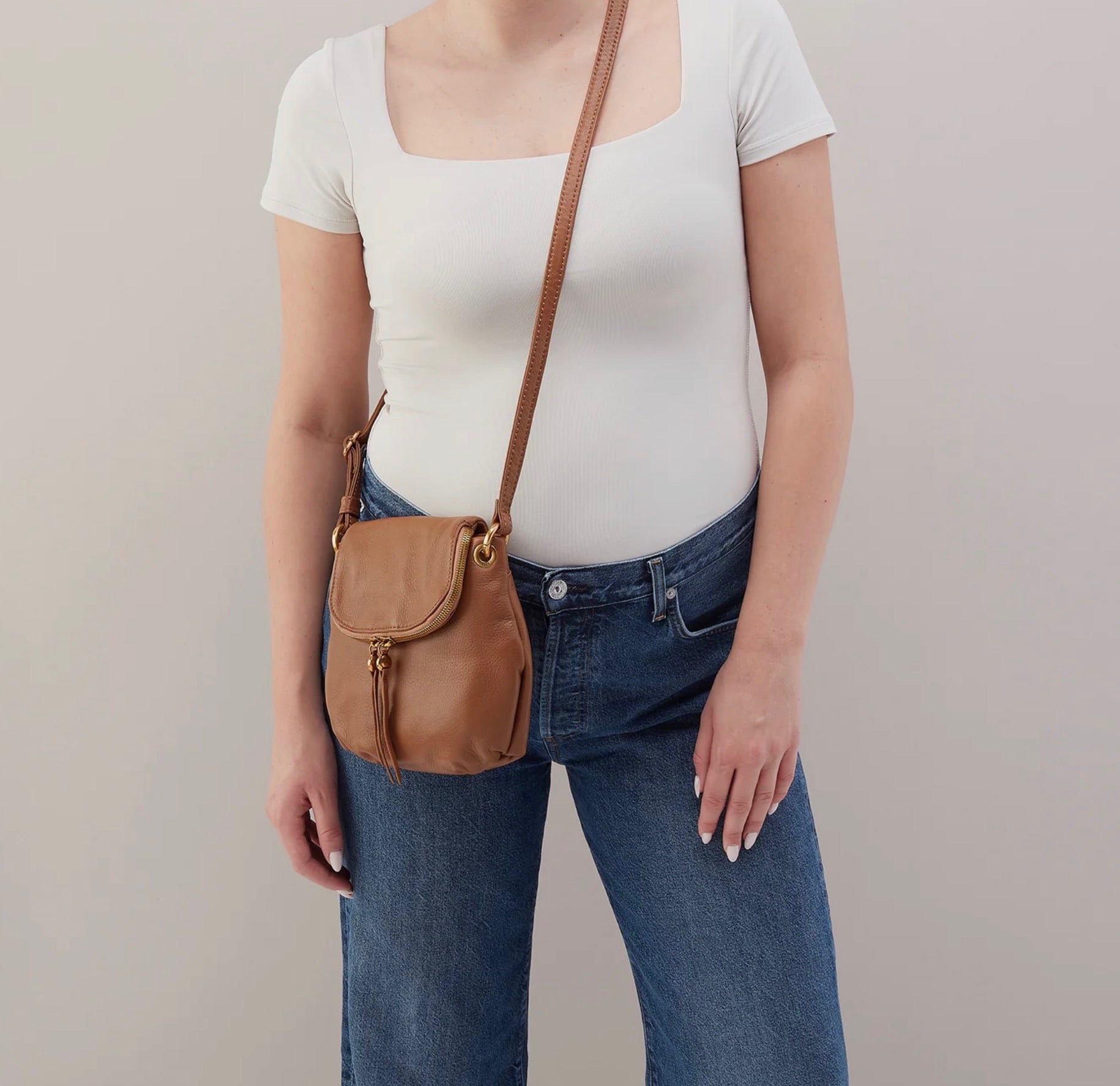 Designed to keep your essentials close, this new hands-free Fern style tucks everything neatly by your side with a smooth zip closure and flap detail.