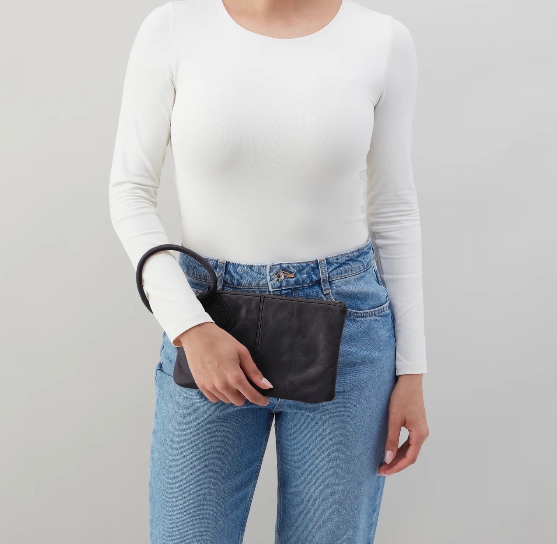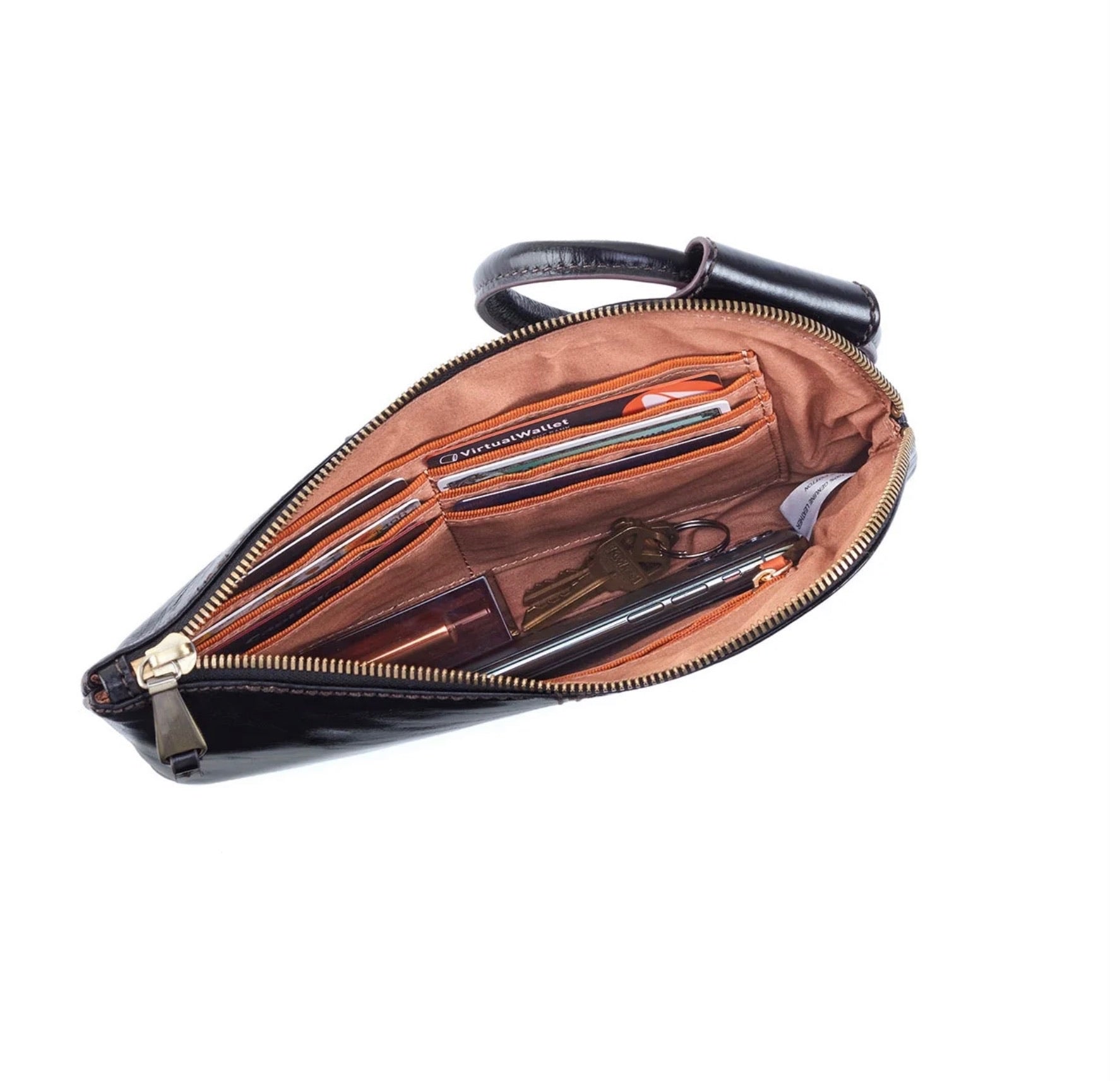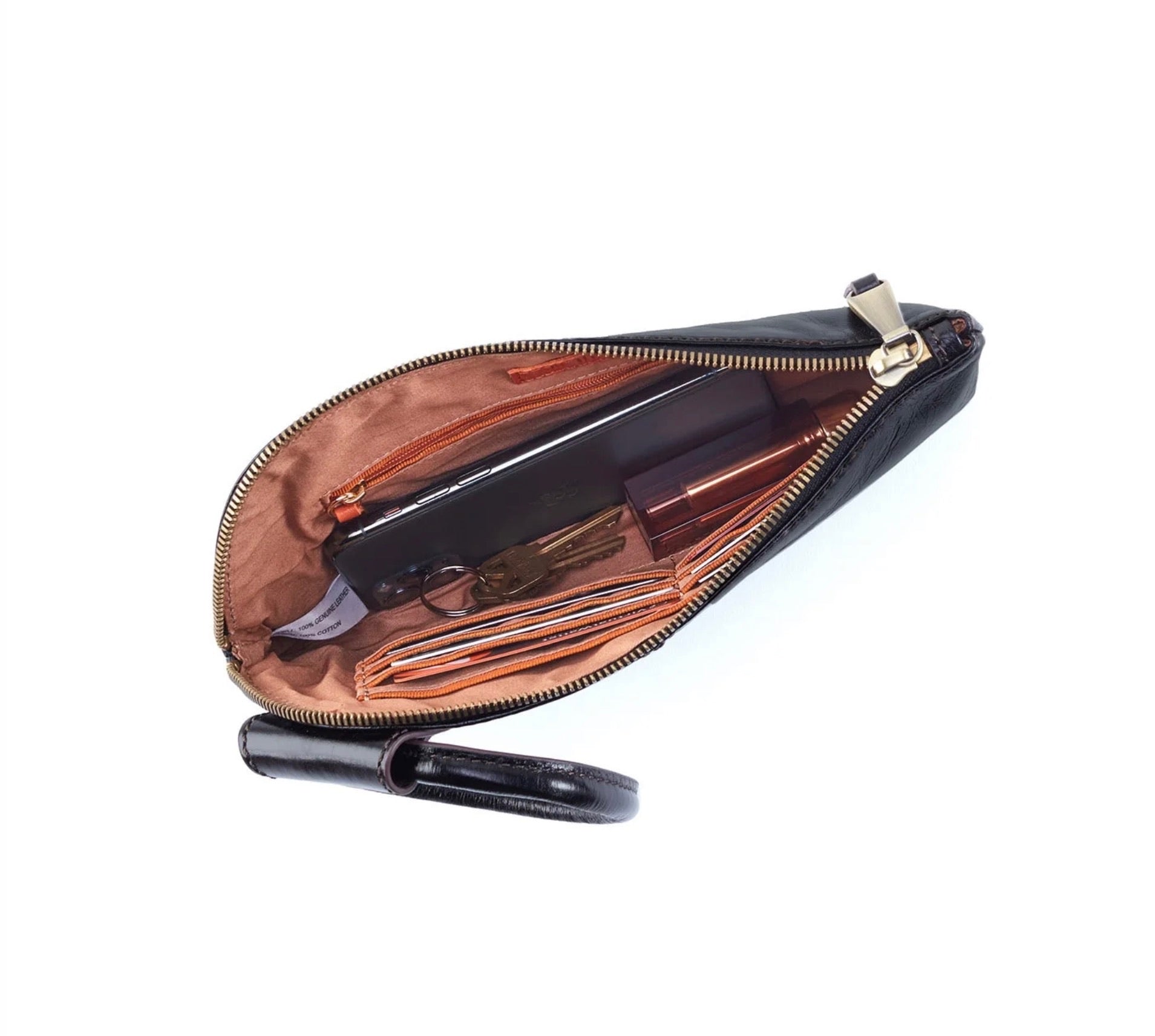- Solid leather wristlet strap