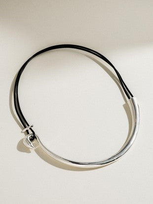 VERVE CHOKER WITH LEATHER STRAP SILVER