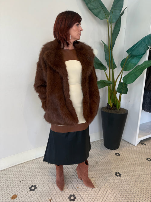 KALEEN FAUX LEATHER MINI DRESS BROWN