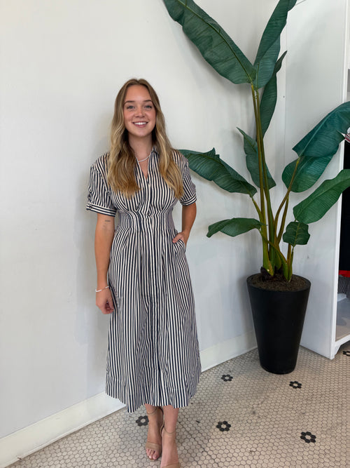 VANISA STRIPE MIDI SHIRT DRESS NAVY