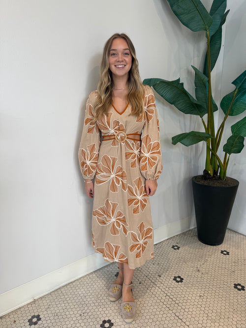JOY EMBROIDERED MAXI WITH SIDE CUT OUT RUST