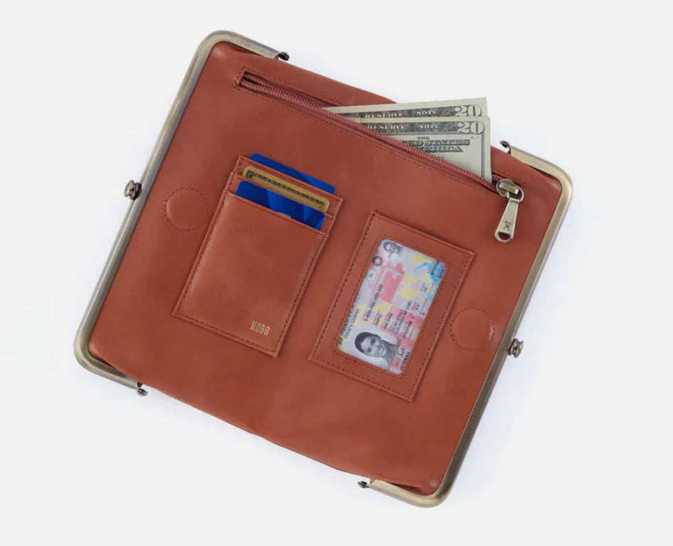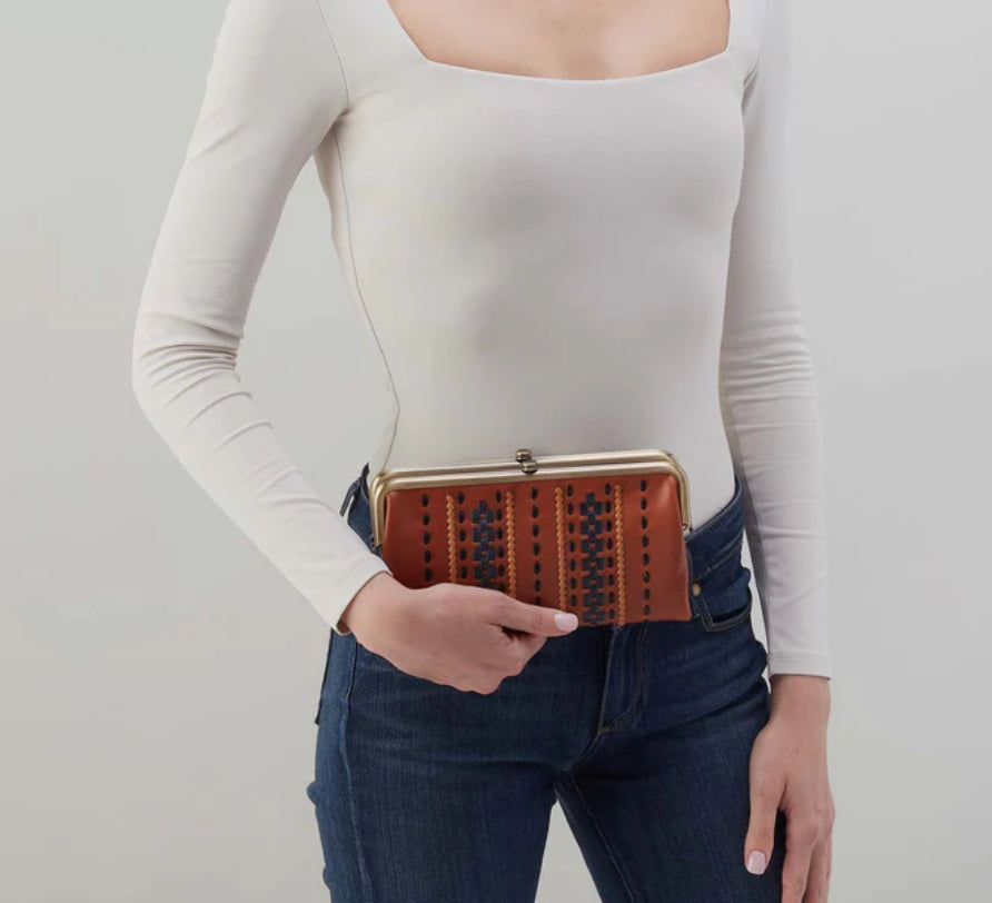 Lauren has a double frame design, making it the perfect hold-everything type of wallet and your favorite clutch.