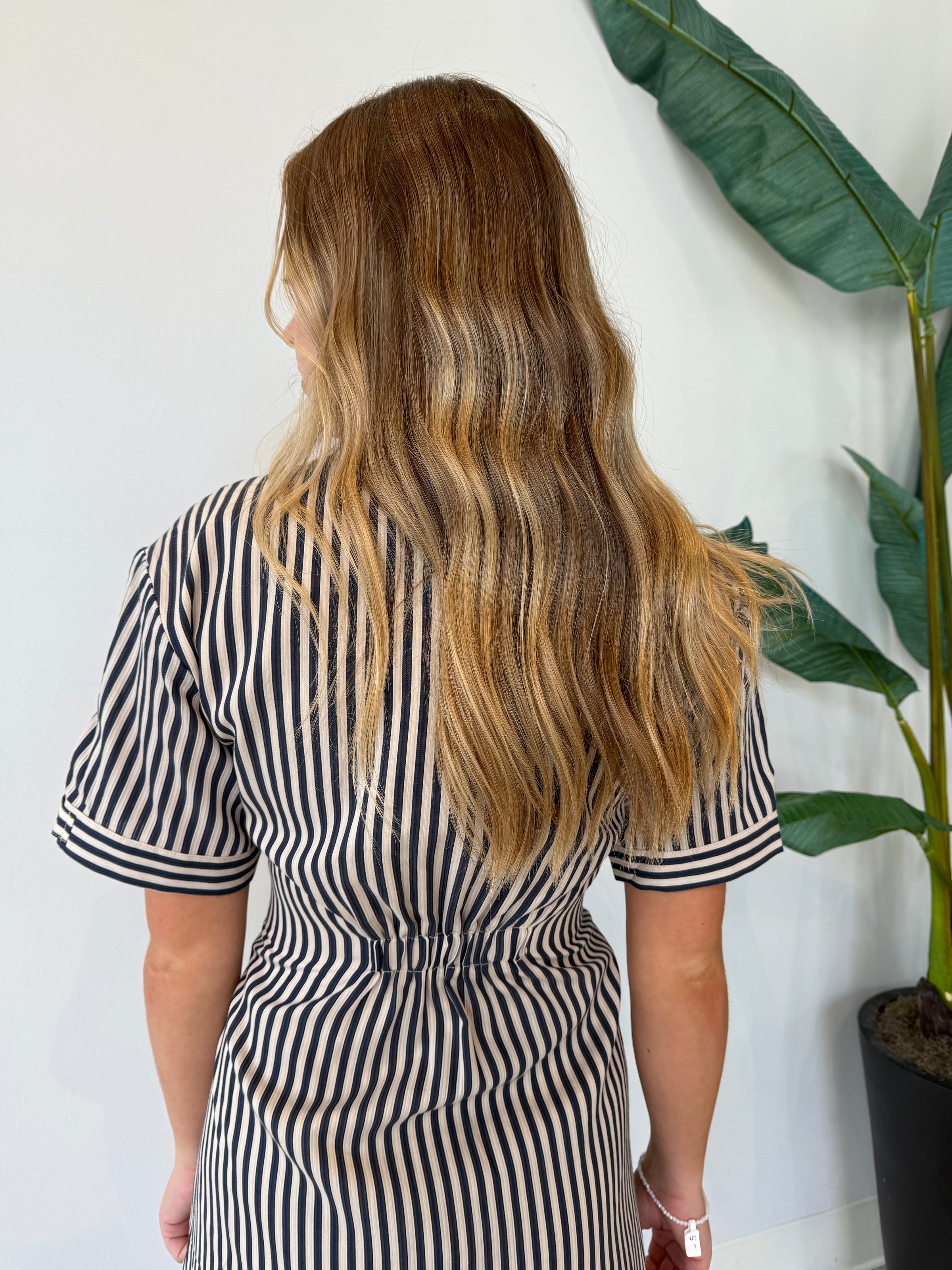 VANISA STRIPE MIDI SHIRT DRESS NAVY