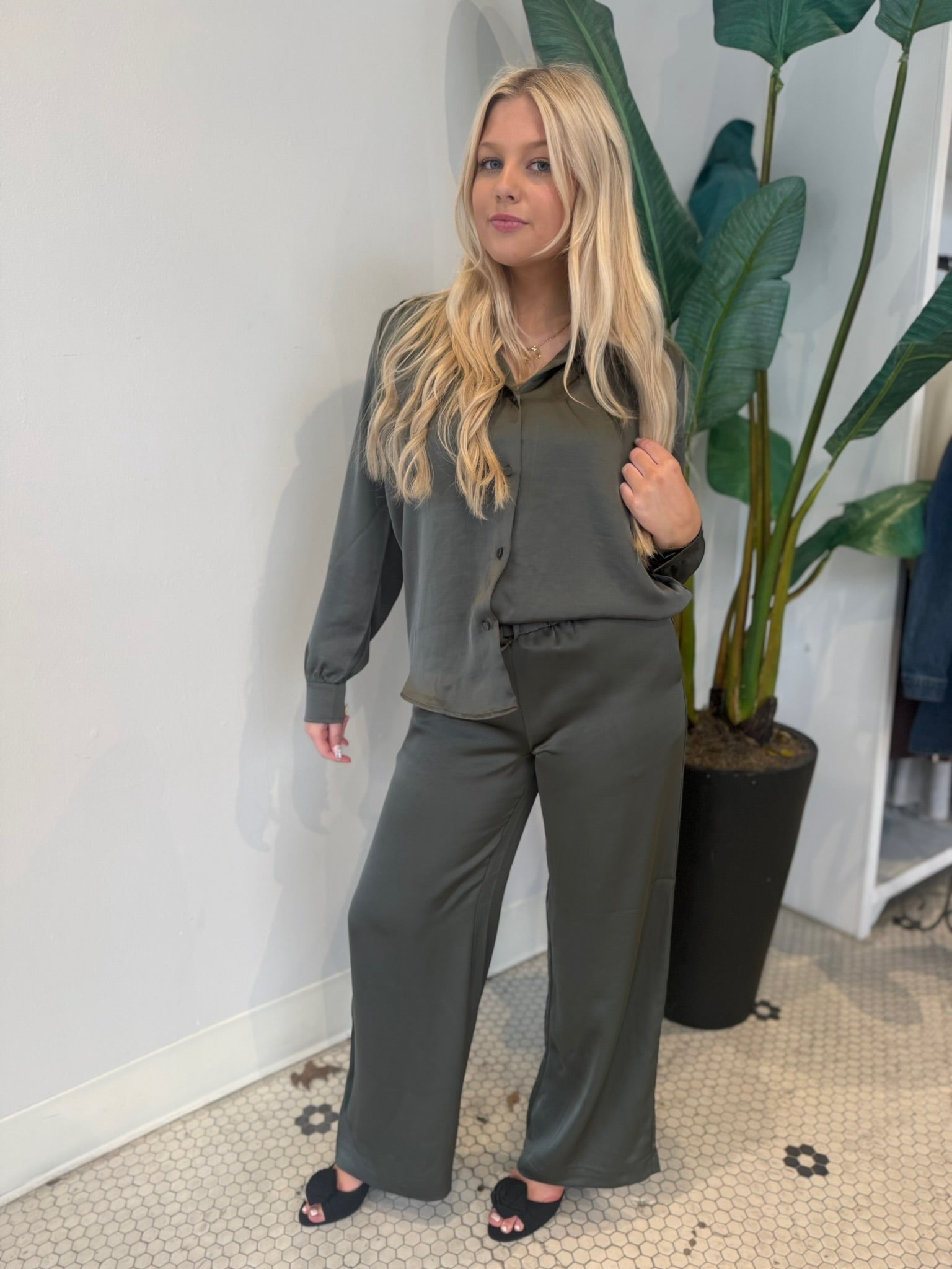 MERRY DRAWSTRING PULL ON PANTS IVY GREEN