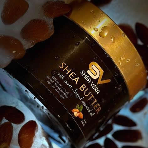 Shea Vera redefining all natural luxury, our shea body butters are unrefined, vegan, and ethically sourced with love from Ghana to rejuvenate, hydrate and promote healthy skin tone and texture. Safe for all skin types, our all-natural raw shea butter nourishes and softens skin for a healthy glow without any harmful hidden chemicals. Rich with fatty acids, and essential vitamins,its therapeutic properties protect the skin barrier against cold, wind, and sun while improving appearance of minor skin imperfections, stretch marks, wrinkles, and discoloration. Shea butter naturally stimulates the activity of skin cells, making it ideal for nourishing rough, damaged skin while minimizing the appearance of fine lines and wrinkles.