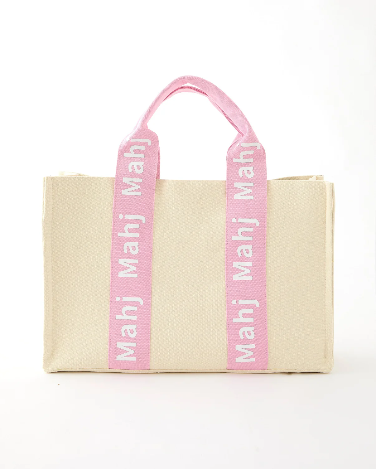 Light Pink Mahj It All Bag: This spacious bag is tailor-made to accommodate all your Mahjong essentials, including tiles, racks, the rack & roller bag, mat, and more. To ensure durability, it comes with a protective dust bag, keeping it in pristine condition. Inside, you'll find two pouches and a zippered pocket for added organization. For convenience and style, we've included a chic crossbody strap, allowing you to effortlessly carry your Mahj-It-All Bag whether you're heading to a gaming session or a busy day at work. Dimensions: 22"W x 15"H x 6"D